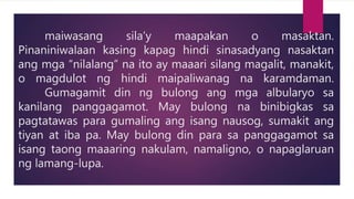 Ako po kasi sumilip e diko naman po alam na may kasabihan na ganon may nakapag sabi lang. Kinabukasan Linapitan niya ulit si Ellen at biglang hinalikan dahil akala niya umepek na ang kanyang bulong. ANG kabataang lalaki na si Tamba sa Kanlurang Aprika ay kukuha ng exam sa paaralan Iginigiit ng kaniyang ina na kailangan niyang humingi ng tulong sa patay niyang mga kamag-anak para makapasa.