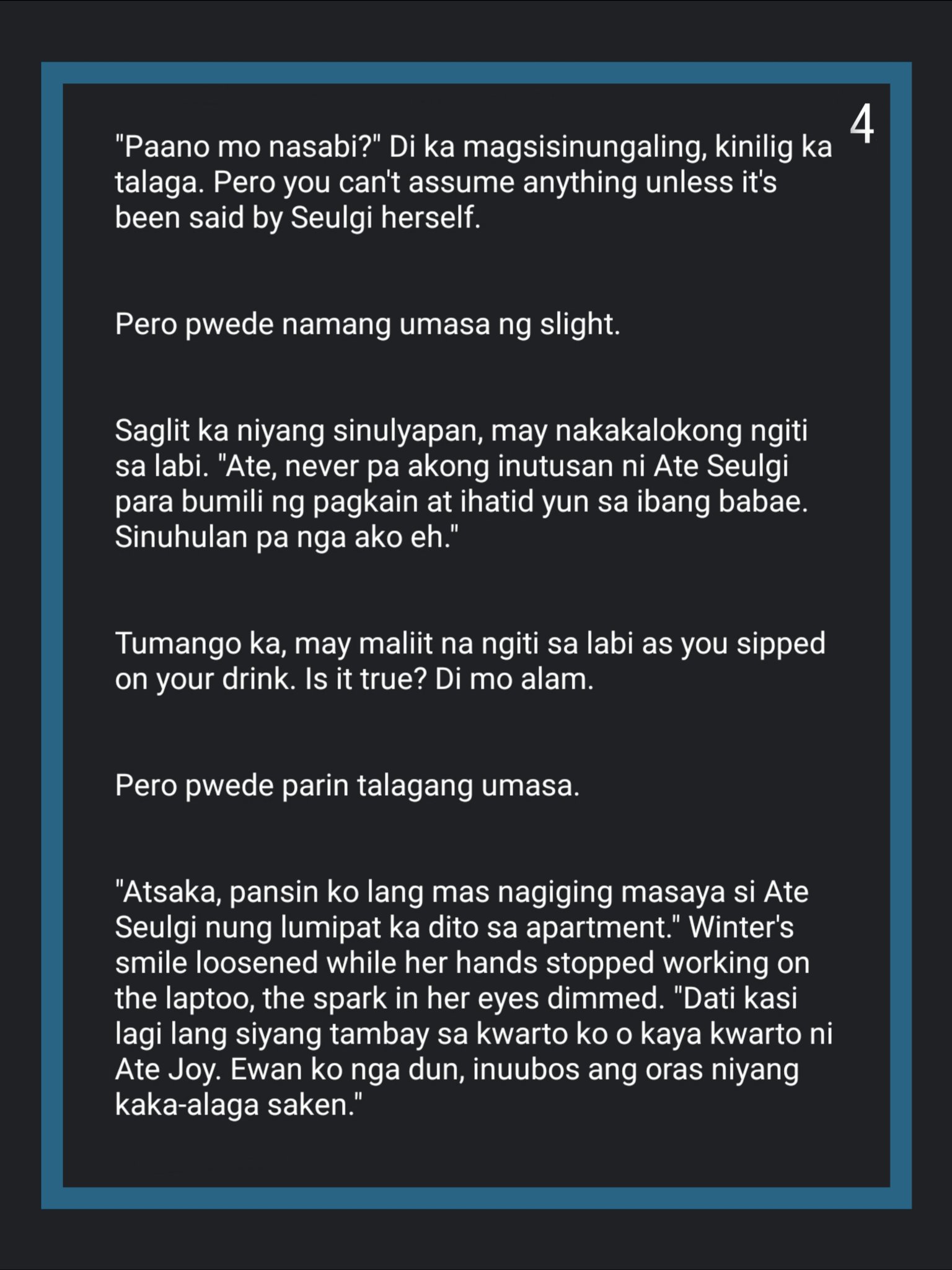 Sa tingin ko may mga bagay na malalaman kahit hindi sabihin. Galit na inutusan niyang magbihis si Solly at saka kinaladkad papalabas mula sa loob ng silid na iyon. Ilang sandali pa ipinasiya na niyang umuwi.